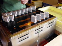 晶が終わると最後に琥珀色の液体が残ります。(琥珀色といえば聞こえはいいですが、実は汚染物質を含む不純物です。当店のにがりは、不純物を取り除いた無色・透明のものを販売しております。)